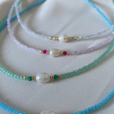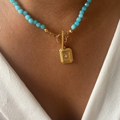 Seja bem vindo a Bijuvera, precisa de ajuda? Os nossos artigos em aço inoxidável não perdem cor em contacto com a agua. Obrigada , Vera Lopes