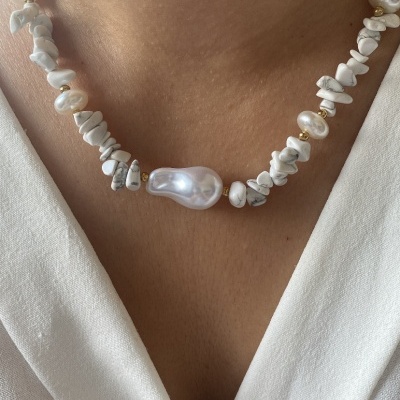 Colar pedrinhas brancas