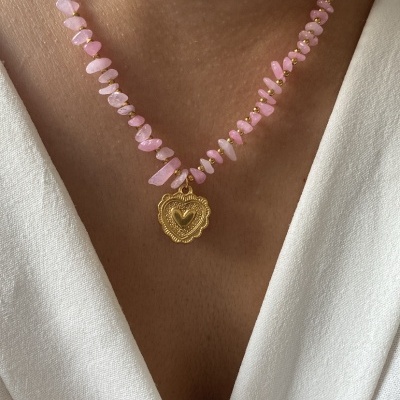 Colar pedrinhas rosa