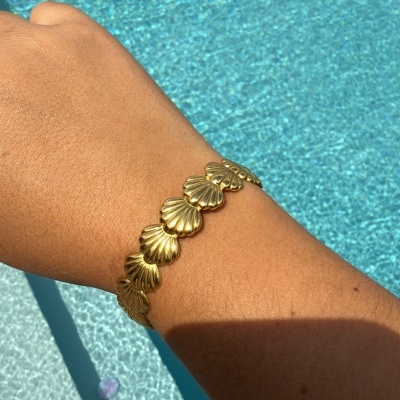 Seja bem vindo a Bijuvera, precisa de ajuda? Os nossos artigos em aço inoxidável não perdem cor em contacto com a agua. Obrigada , Vera Lopes