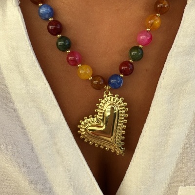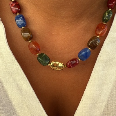 Colar pedrinhas nossa senhora azul/rosa/branco