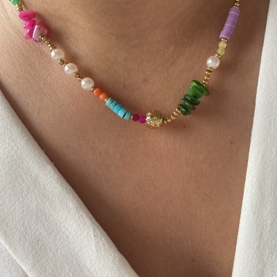 Seja bem vindo a Bijuvera, precisa de ajuda? Os nossos artigos em aço inoxidável não perdem cor em contacto com a agua. Obrigada , Vera Lopes